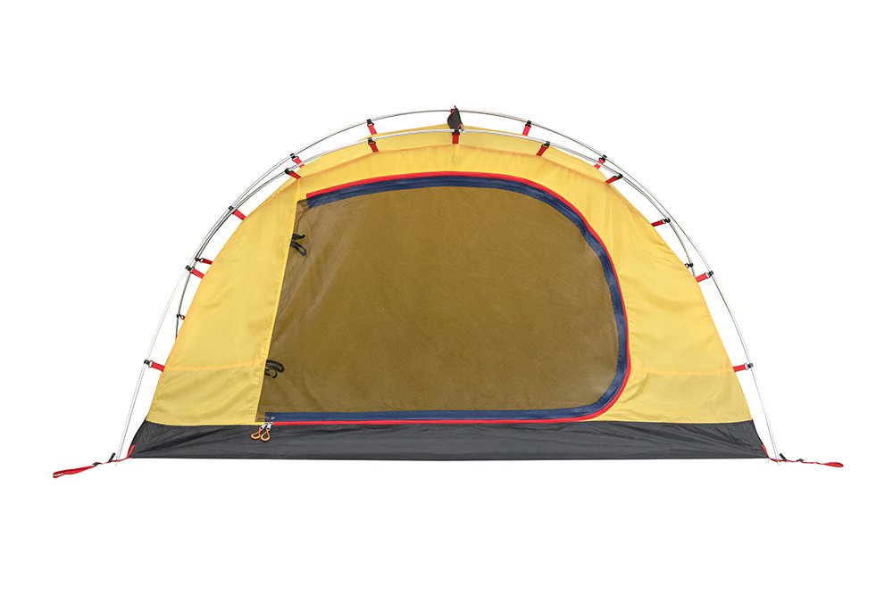 Тент внутренней палатки произведен из полиэстеровой ткани с усилением RipStop Light. Для усиления ткани без большого увеличения веса вплетена более толстая и прочная нить с равномерным шагом по вертикали и горизонтали - это технология RipStop. Ткань паропроницаема и почти не конденсирует на себе влагу, обработка WR (водоотталкивающая пропитка) не позволяет каплям конденсата проникать во внутреннюю палатку, что гарантирует сухость и комфорт. Тент внутренней палатки желтого цвета для психологического комфорта проживающих (жить в темных палатках не очень приятно, а просыпаясь в палатке Alexika, вы видите солнышко вокруг себя).