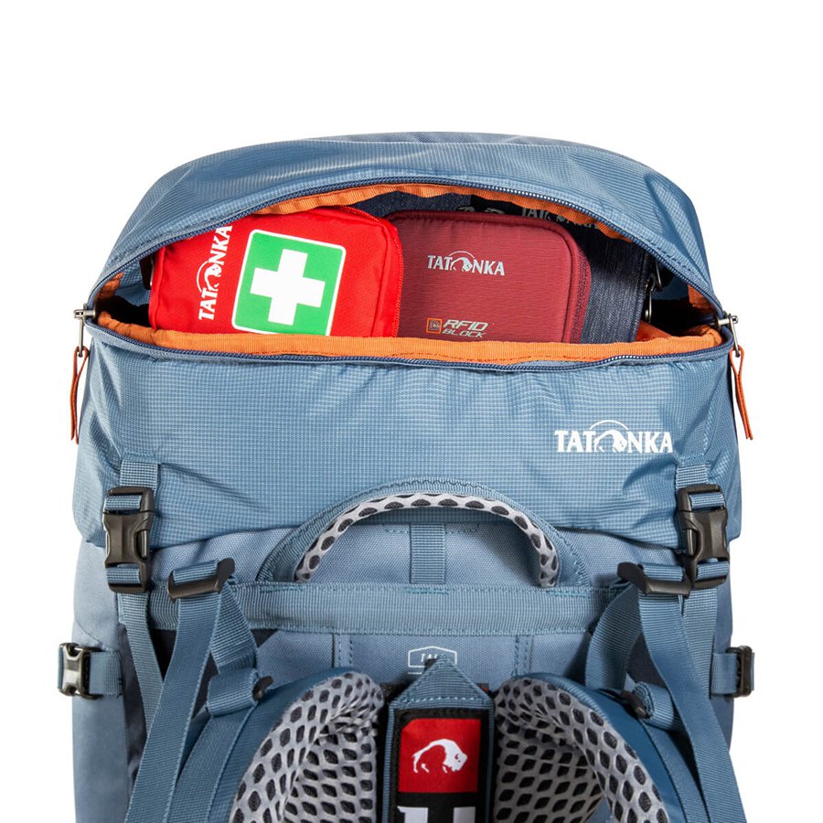 Крышка рюкзака съемная, ее можно снять и использовать как сумку через плечо — например, когда рюкзак остается в номере. Также, крышку можно прикрепить к передней части плечевых ремней для вещей, которые нужно иметь под рукой. Yukon 50+10 W имеет обработку DWR, не содержащую PFC/PFAS. Кстати, женская версия рюкзака Tatonka Yukon 50+10 Women имеет специально форму плечевых ремней и адаптированную длину спины.