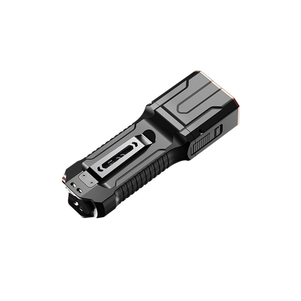 Быстрая зарядка осуществляется за 1,5 часа через порт USB-C. Аккумуляторный отсек оснащен механизмом блокировки, который обеспечивает надежную блокировку отсека в момент использования фонаря. Перед извлечением аккумулятора замок необходимо разомкнуть.