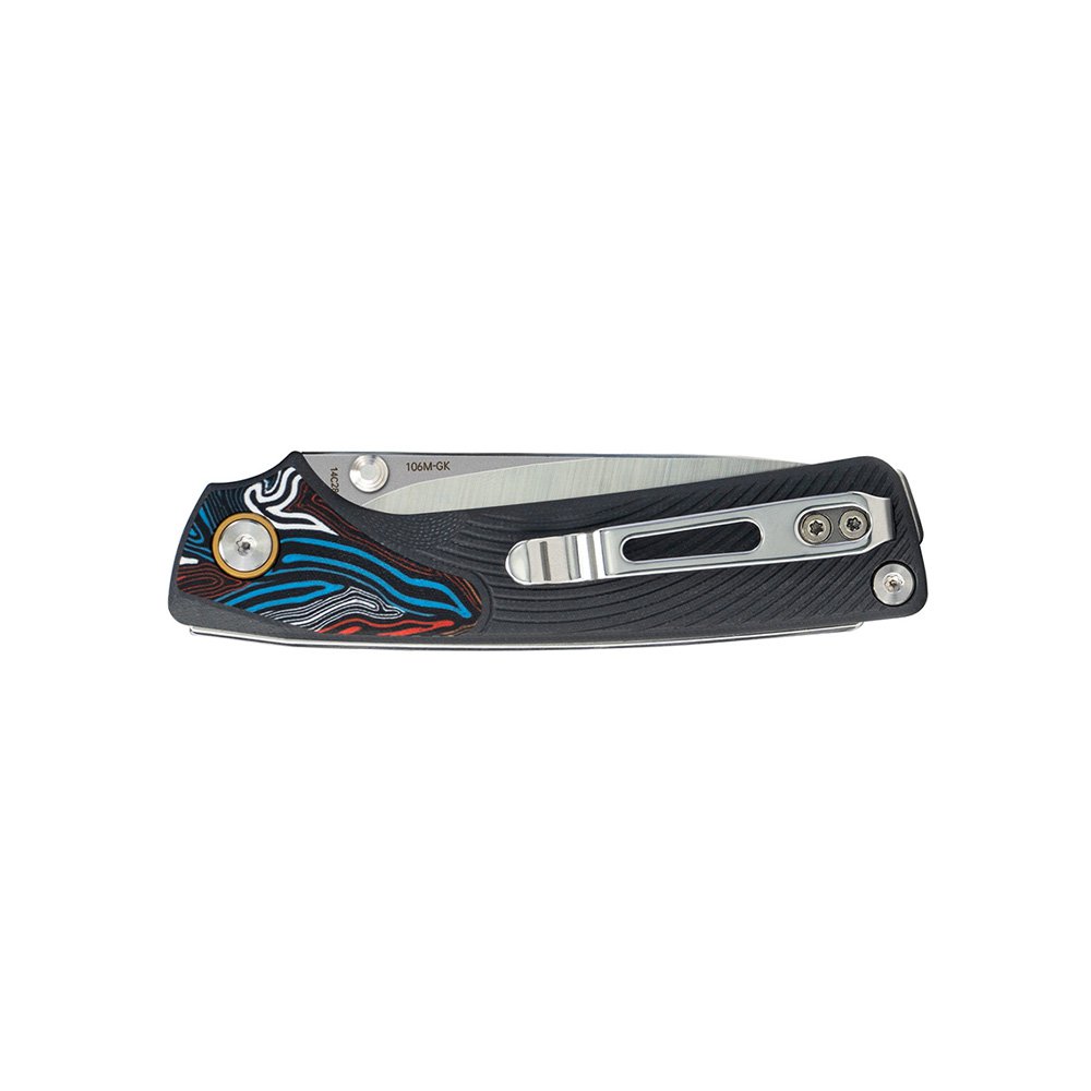 Нож SRM выполнен в стиле slip joint, то есть без традиционного фиксирующего механизма, что делает его особенно лёгким и компактным. Несмотря на отсутствие классического фиксатора, нож обладает устойчивым положением в открытом состоянии благодаря механике пружины и бронзовой шайбе в осевом механизме, которая имеет большую площадь контакта с лезвием. Это позволяет использовать SRM Dome 106M-GK как простой и надёжный EDC-нож, ориентированный на ежедневные задачи.
