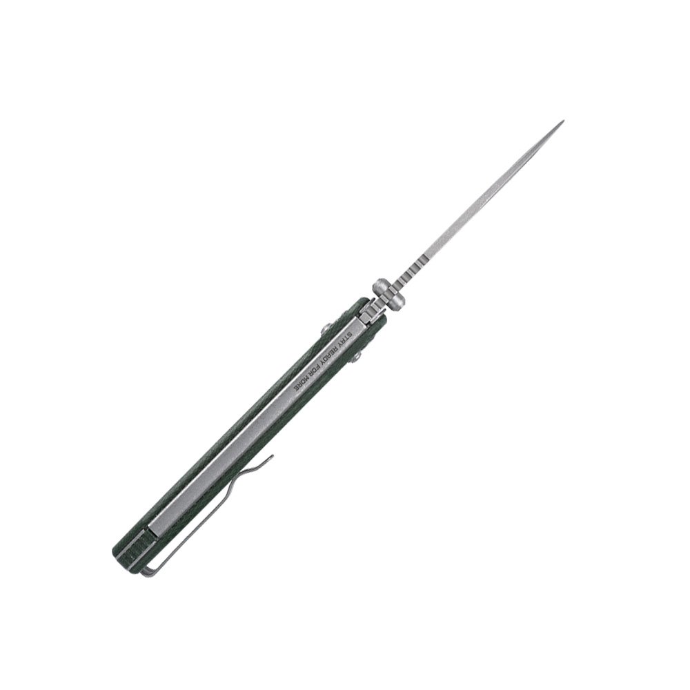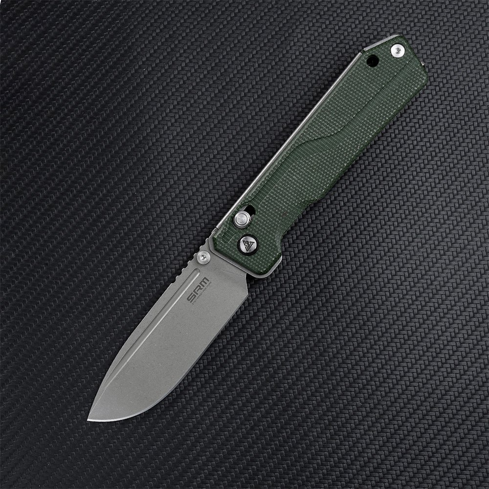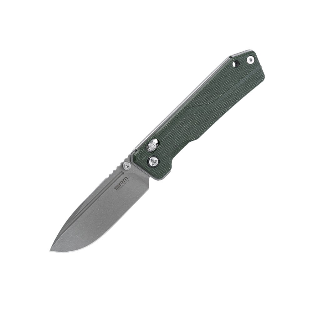 Рукоять SRM 7228B-MG изготовлена из микарты — прочного композитного материала с приятной текстурой, устойчивого к влаге, перепадам температуры и износу. Керамический подшипник в осевом узле обеспечивает плавное, легкое открытие клинка. Надежный лайнерный замок фиксирует клинок в открытом положении и исключает самопроизвольное складывание.