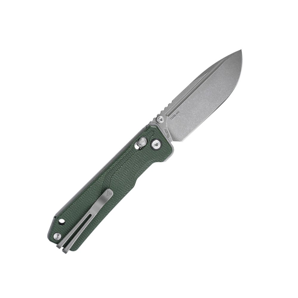 Клинок выполнен из нержавеющей стали Sandvik 14C28N с твёрдостью 57–59 HRC, что обеспечивает оптимальное удержание кромки и стойкость к коррозии. Благодаря технологии охлажденной заточки режущая кромка дольше сохраняет остроту и прочность. Финишная обработка клинка — stonewash, такой вид финиша хорошо скрывает мелкие царапины, отпечатки пальцев и не бликует.