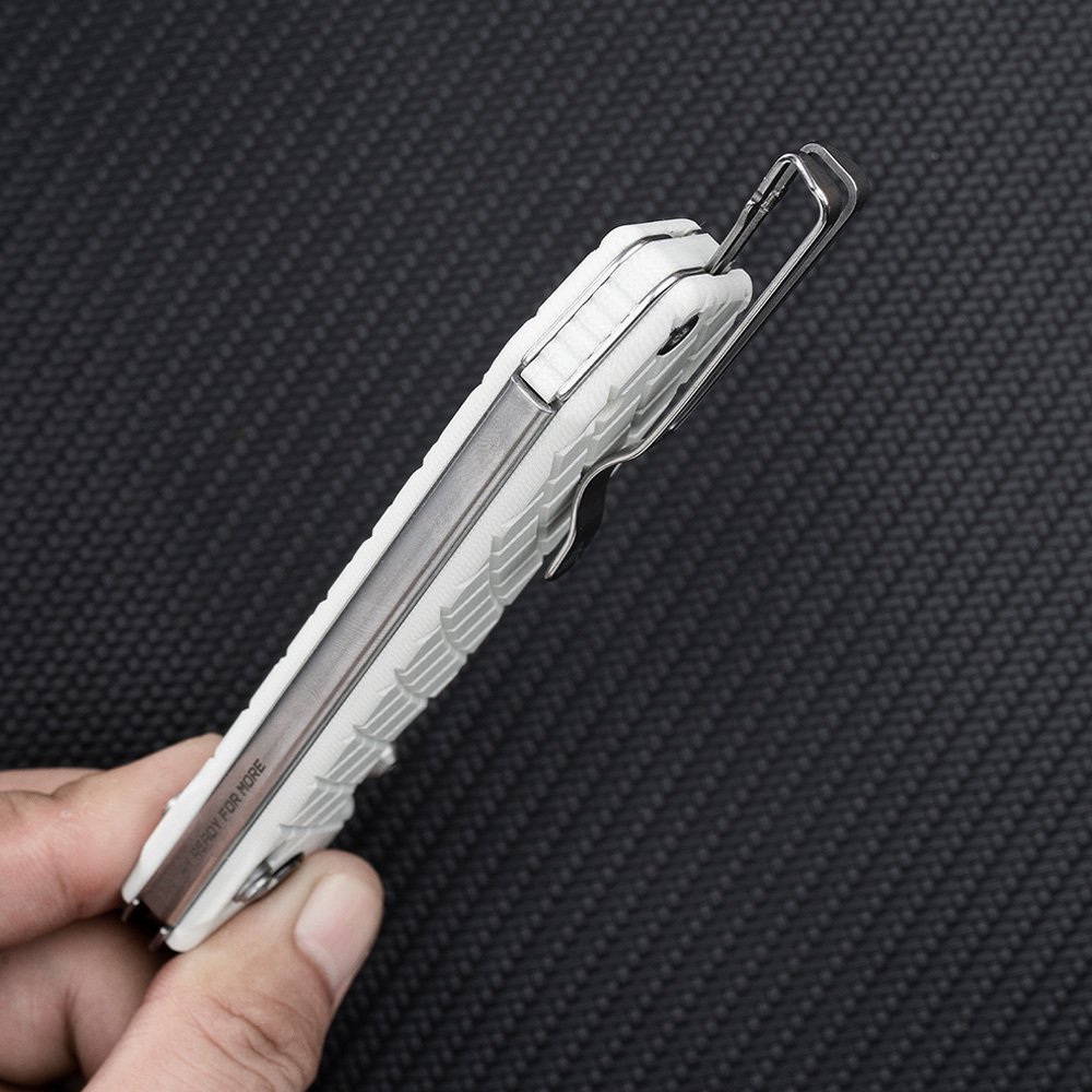 Он сочетает в себе прочную конструкцию, сбалансированный вес и качественные материалы. Длина клинка (87 мм), вес (119г), керамический подшипник и форма рукоятки делают модель удобной для легких и для силовых работ. Симметричная клипса, которую можно переставить без инструмента, подходит как правшам, так и левшам.