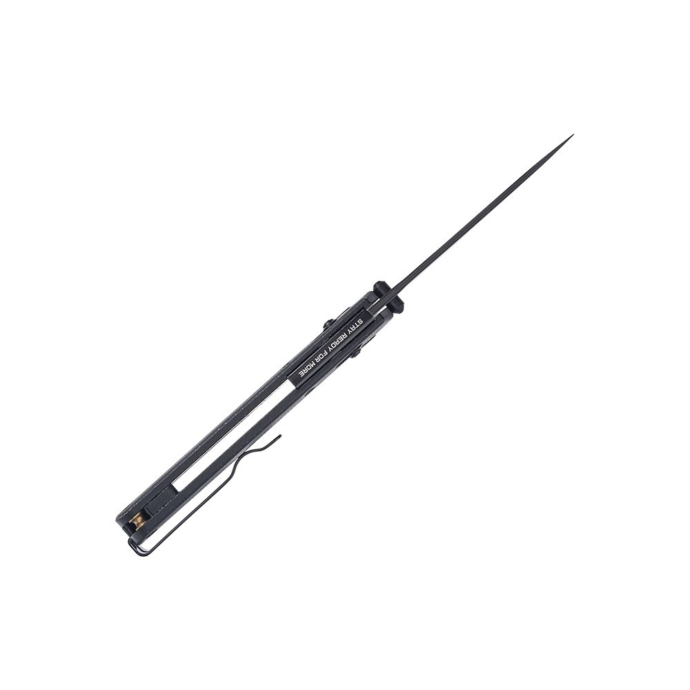 Клинок выполнен из стали 140Cr, Благодаря ламинированию двумя слоями других нержавеющих сталей, лезвие обладает характеристиками, сравнимыми со сталью S35VN. Твердость 61–63 HRC обеспечивает длительное удержание заточки. Благодаря технологии охлажденной заточки, режущая кромка остается острой дольше, не теряя рабочих свойств. Черное покрытие PVD придаёт клинку тактический внешний вид и повышает его стойкость к коррозии и износу. Толщина клинка — 2,6 мм.
