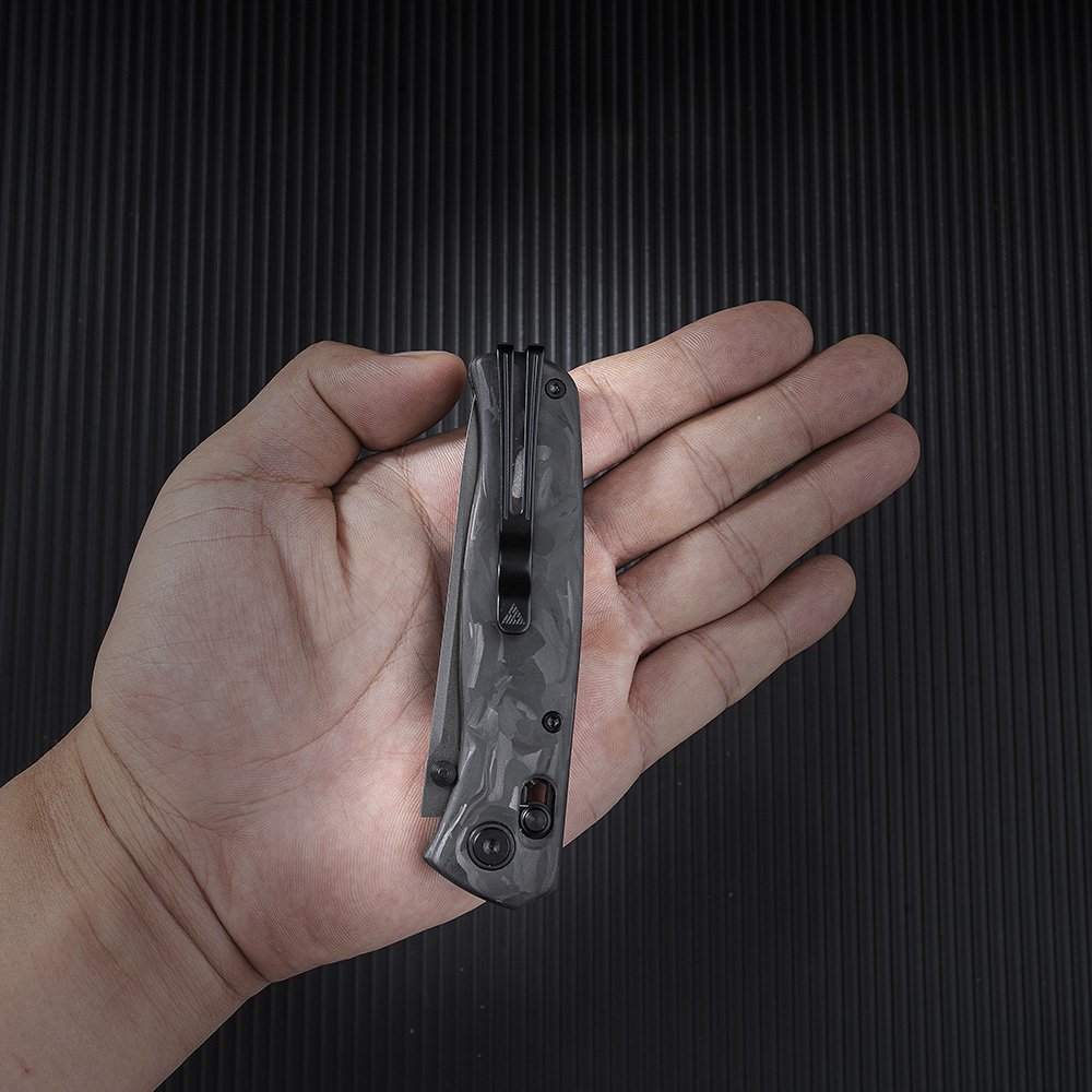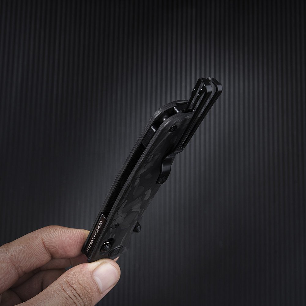 Рукоять выполнена из карбона (углеродного волокна) — высокотехнологичного материала, известного своей легкостью и одновременно высокой прочностью. Карбон устойчив к деформации, влаге и экстремальным температурам, не выцветает и практически не подвержен износу. В осевом узле установлен керамический подшипник, который обеспечивает плавное и быстрое открытие лезвия. SRM 255L-FB2 Medal — отличный выбор для тех, кто ценит компактность, технологичность и надёжность в ежедневном ношении и работе.