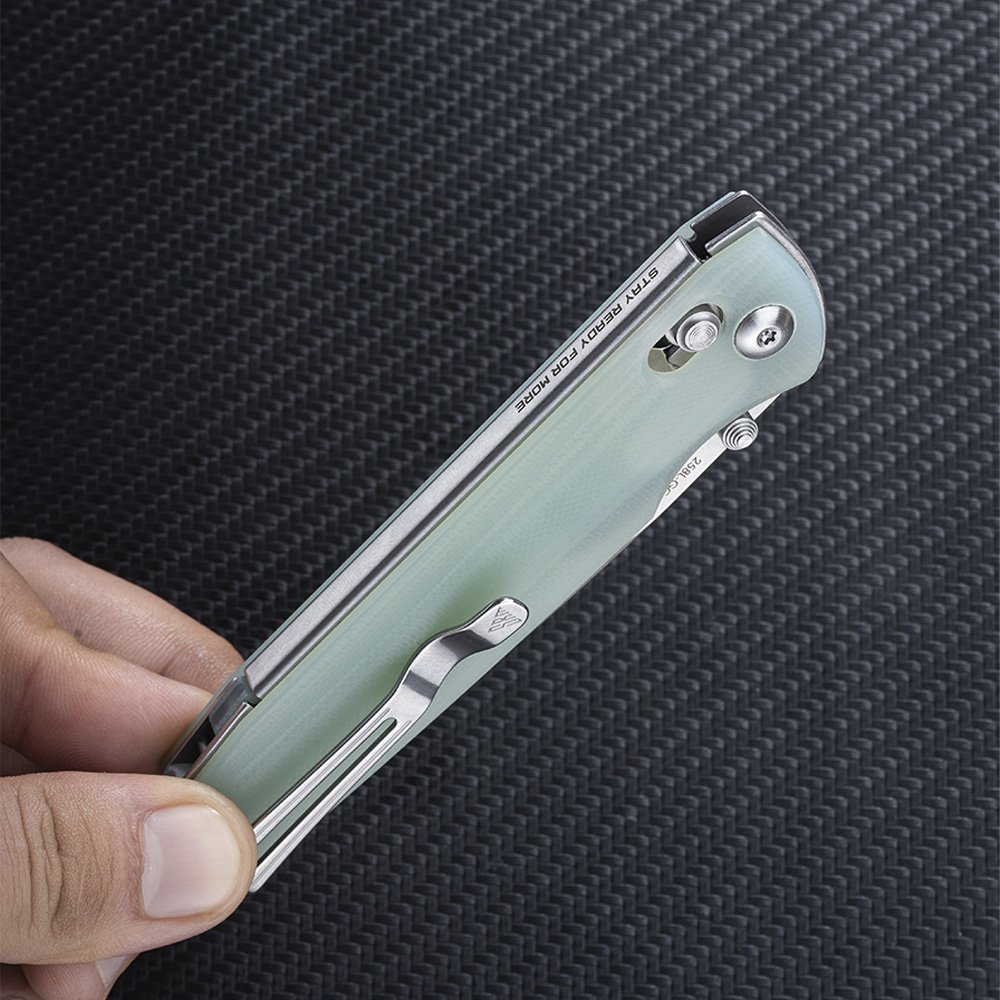 Рукоять выполнена из прочного и надежного стеклотекстолита G10, обладающего высокой устойчивостью к влаге и механическим повреждениям. В осевом узле установлен керамический подшипник, обеспечивающий мягкое, быстрое и точное открытие. Замок Ambi Lock, основанный на поперечном штифте, предотвращает самопроизвольное закрытие даже под высокой нагрузкой. Нож легко управляется одним пальцем, что выгодно отличает его от многих аналогов с менее удобной системой.