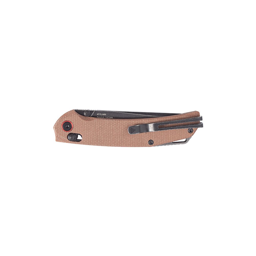 Рукоять SRM 411L-MN изготовлена из микарты — плотного композитного материала с отличной цепкостью, даже во влажных условиях. Микарта обладает высокой прочностью, устойчива к температурным перепадам и не боится влаги. Внутри конструкции расположен керамический подшипник, который обеспечивает плавное и быстрое открытие клинка, делая каждое движение точным и мягким.