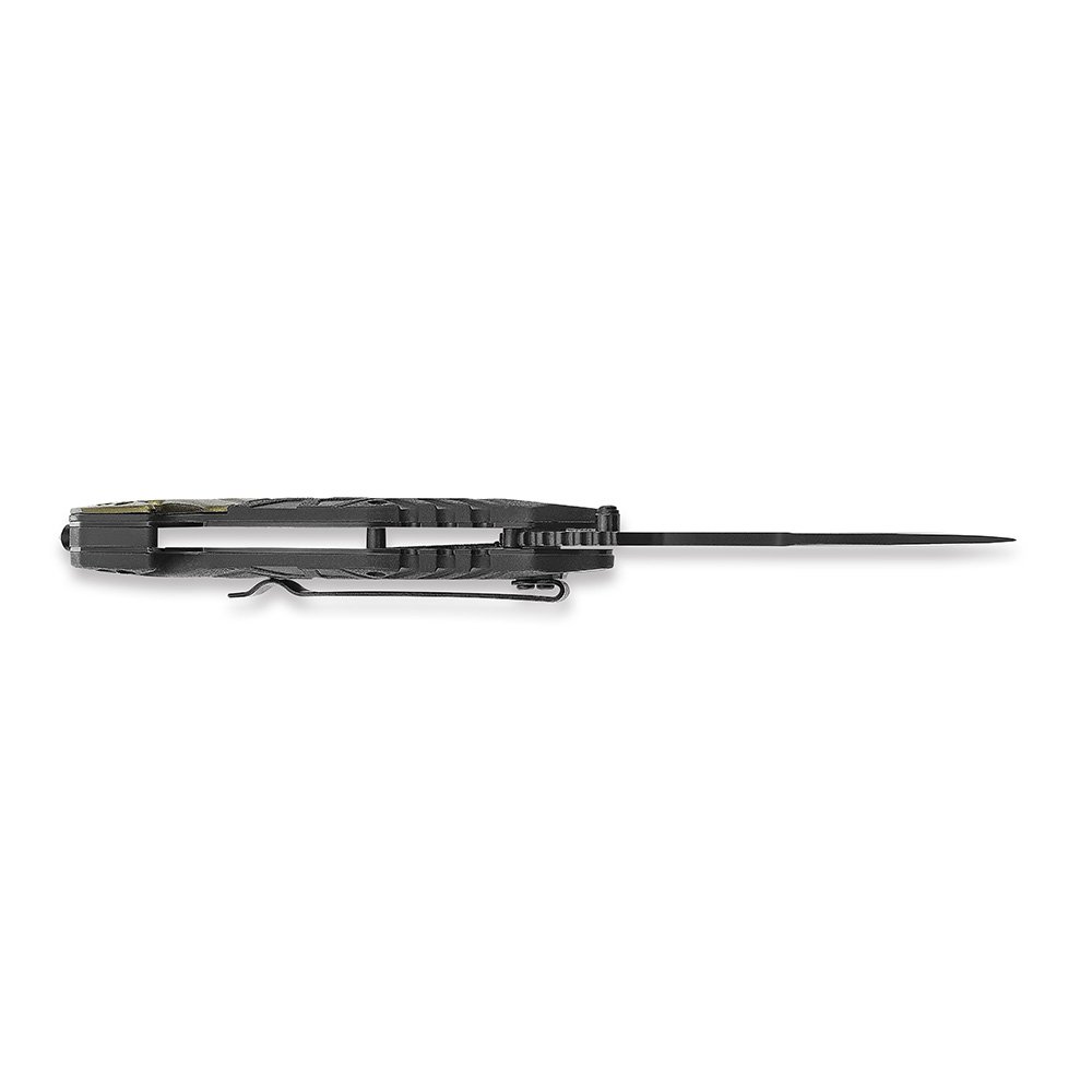 За фиксацию клинка отвечает полуавтоматический замок типа Liner Lock. Он обеспечивает надежную блокировку в открытом положении и удобное складывание одной рукой. Раскрытие ножа осуществляется с помощью флиппера — быстро и интуитивно. Дополнительно на клинке предусмотрен шпенек.