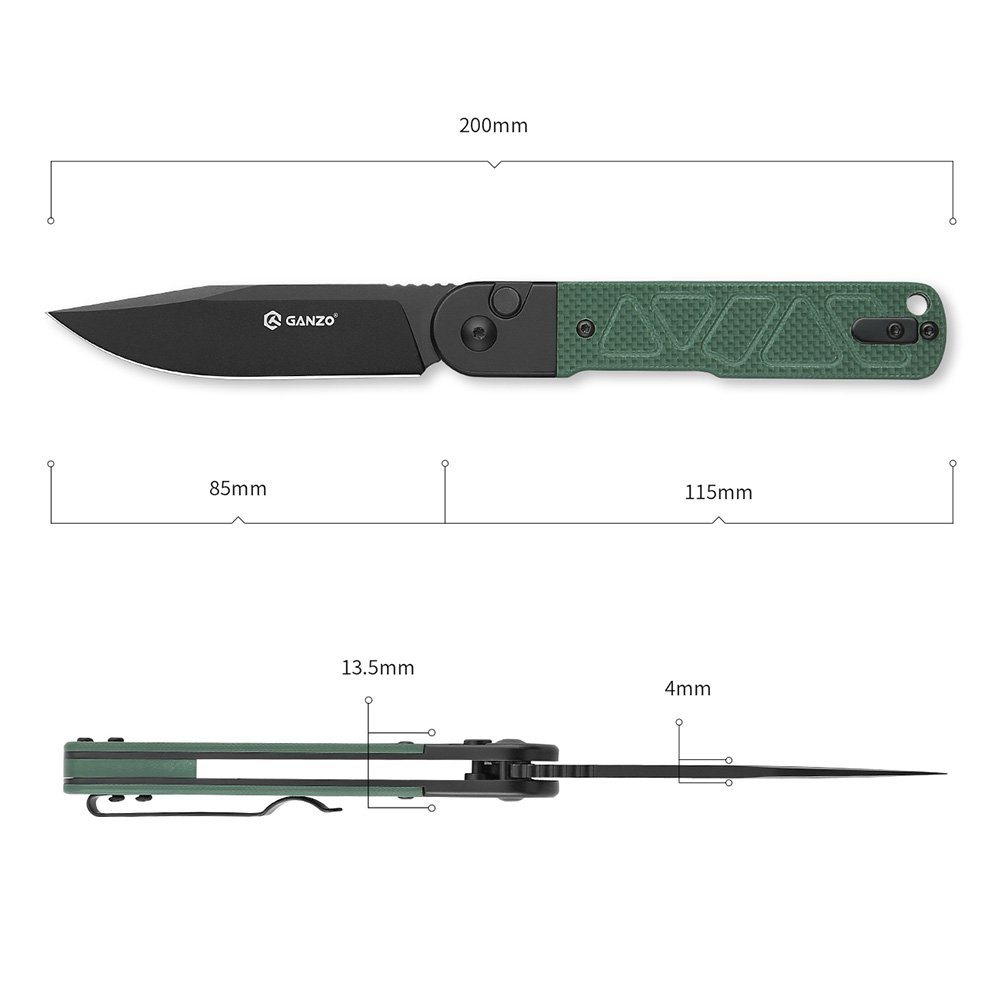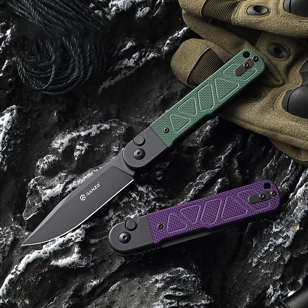 Рукоять изготовлена из прочного композитного материала G10. Ножи с рукоятью G10 защищены от износа, имеют хорошую цепкость с кожей и не плавятся при воздействии высоких температур. В конструкцию складного ножа Ganzo G767PT встроен замок Auto Lock. Ножи Auto Lock раскрываются с помощью кнопки и легкого взмаха кистью.