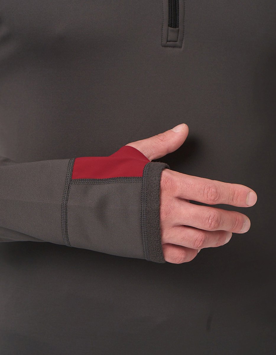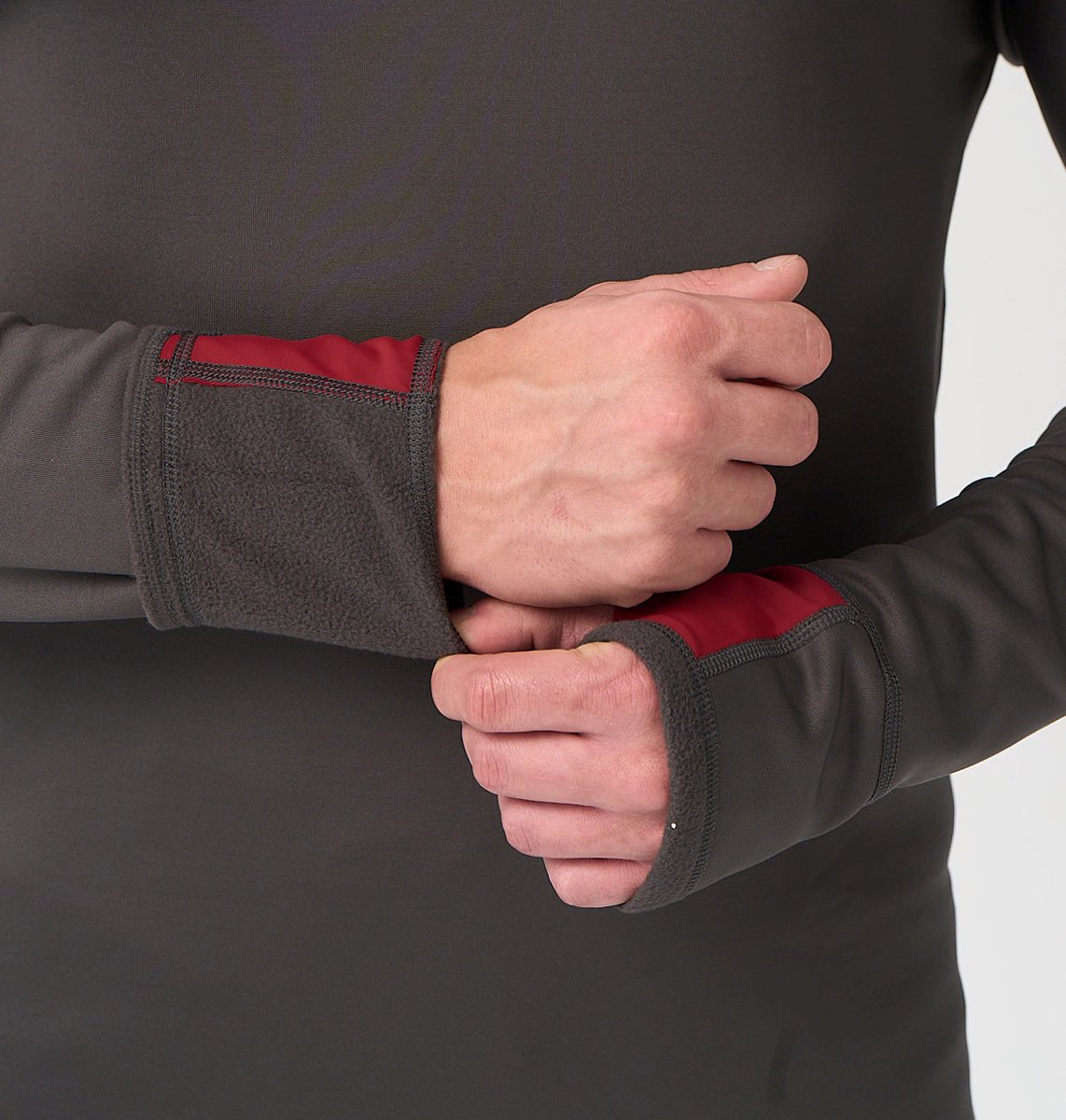 Длинные рукава, с манжетом и отверстием для большого пальца, чтобы закрыть всю ладонь. Это отличная защита от ветра, удобно под флиской или курткой. Если нужно, манжет можно подвернуть и зафиксировать на запястье.