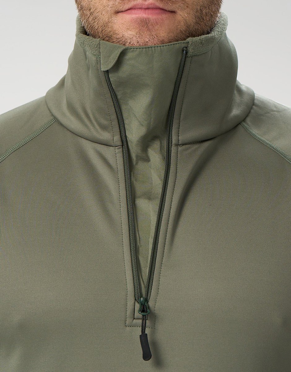 Воротник специальной формы: оснащен треугольной вставкой-расширителем, молния не закусывает кожу. Воротник надежно защищает горло от холодного воздуха. При расстёгнутой молнии воротник даёт большое «окно» для вентиляции и радикально уменьшает давление на горло при этом защищает от холодного ветра. Воротник можно подвернуть вниз, как в водолазке. Воротник достаточно высокий для защиты в лютый ветер.