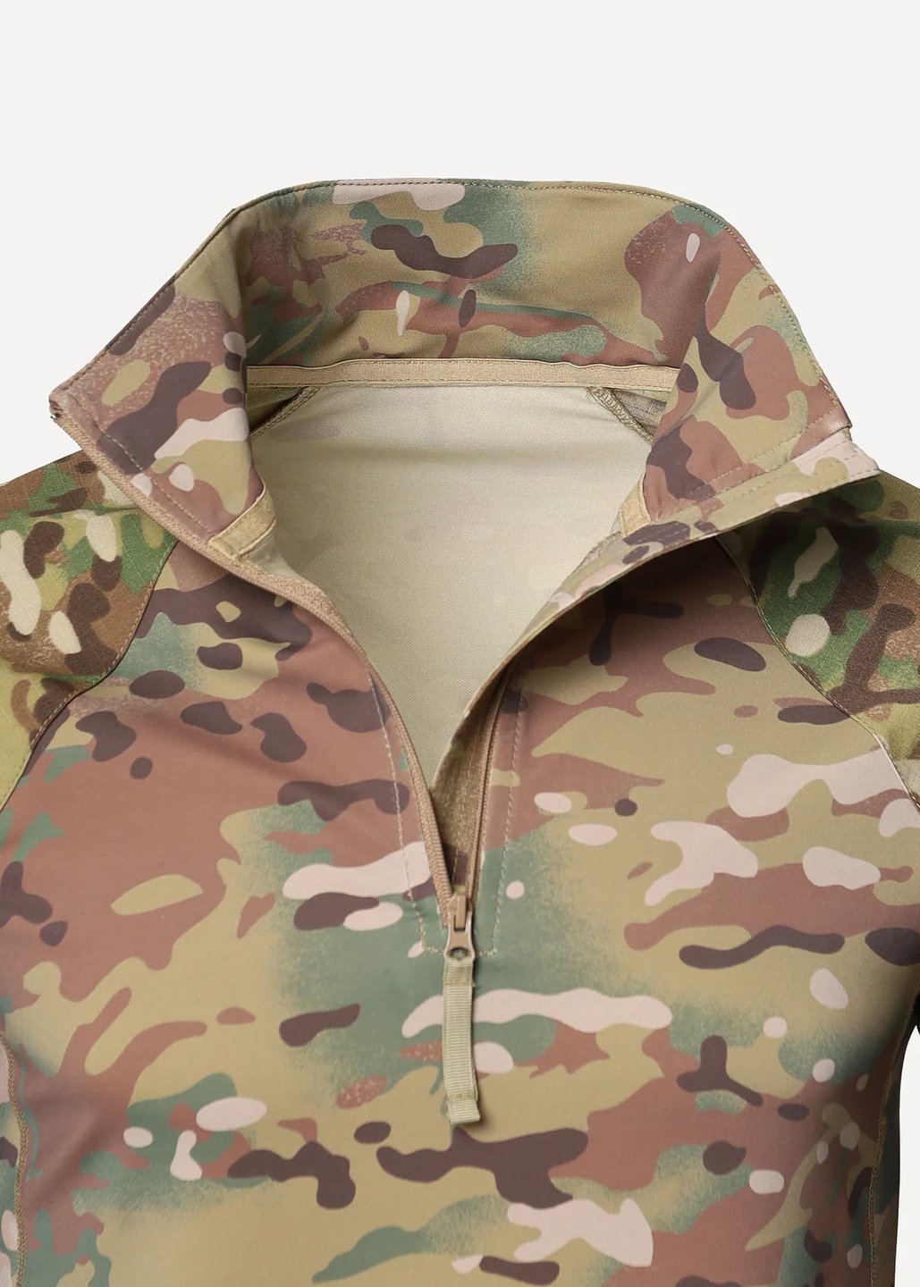 - Рукав реглан — на плечах сверху отсутствуют швы, натирающие под лямками бронежилета