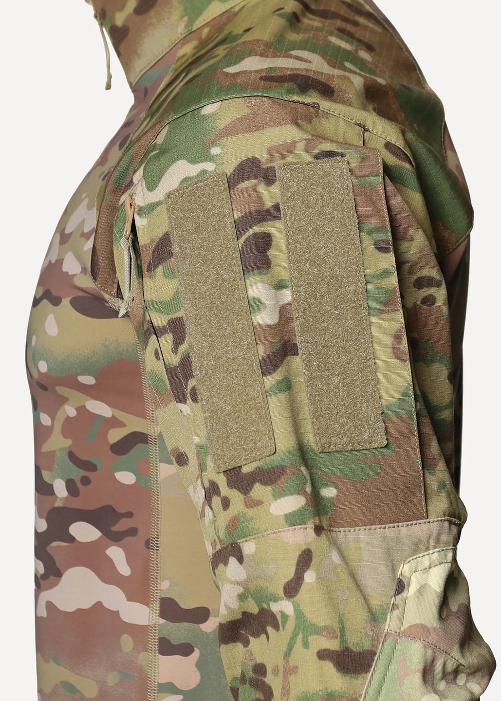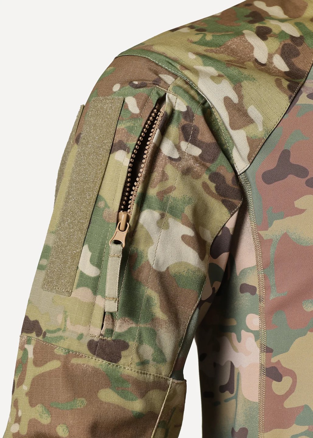 - Нарукавные карманы со входом на вертикальной тракторной молнии, снаружи молния прикрыта узкими симметричными планками. Сзади имеется складка для объема. Липучки для крепления шевронов (10×15 см) из двух фрагментов, выполнены методом лазерной резки. В новой модели рубашки карман имеет гораздо более тонкий профиль