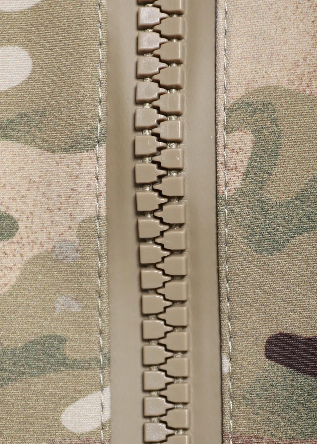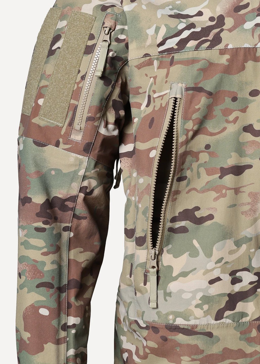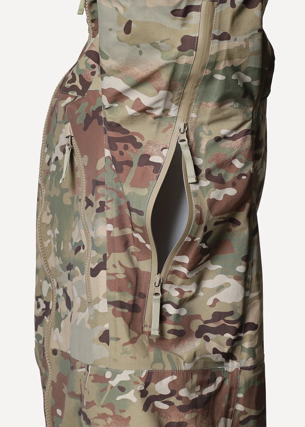 Нагрудные карманы со входом на наклонной молнии по бокам туловища. Карманы не перекрываются поясами РПС и рюкзаков, вход доступен при надетом бронежилете, разгрузочном жилете или нагруднике.