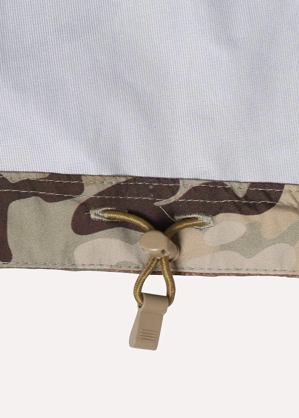 Низ куртки утягивается эластичным шнуром с регулировкой фиксаторами Duraflex® по бокам.