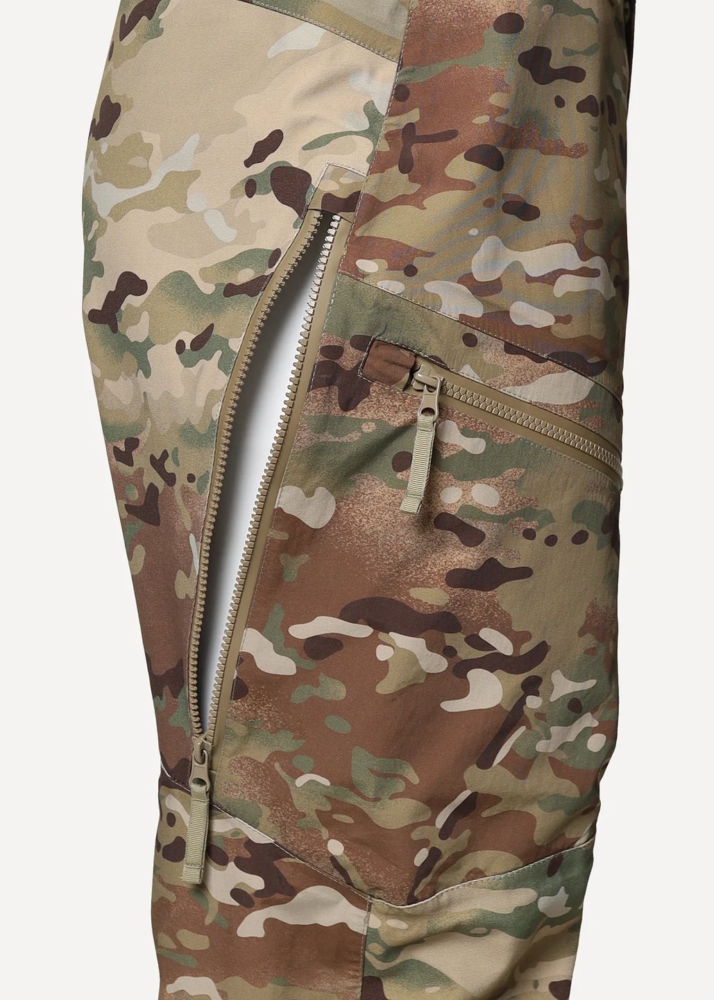 - С внешней стороны бедер однозамковые вентиляционные молнии