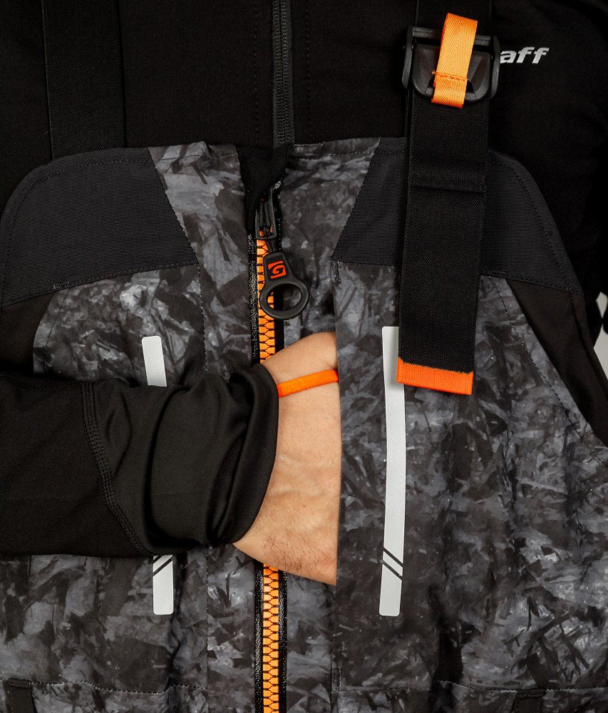 Float Guard обладает уникальным выталкивающим свойством в воде, благодаря многослойному пенополиуретану, который дает возможность использования его в чрезвычайных ситуациях на воде. Этот материал также способствует защите от переохлаждения, уменьшая риск гипотермии. При непредвиденном попадании в воду, костюм продержит вас на поверхности такое количество времени, которое необходимо для самостоятельного спасения или оказания вам помощи. Костюм выполнен в анатомическом крое, и в отличии от классических костюмов-поплавков, является раздельным, что увеличивает комфортность его использования.