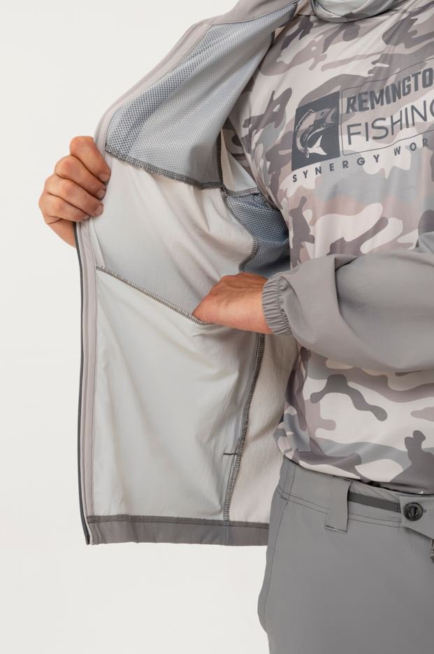 Однотонный серый градиент делает костюм Remington Hot Summer Gray Gradient универсальным — он подходит не только для охоты и рыбалки, но и для активного отдыха и повседневной носки.