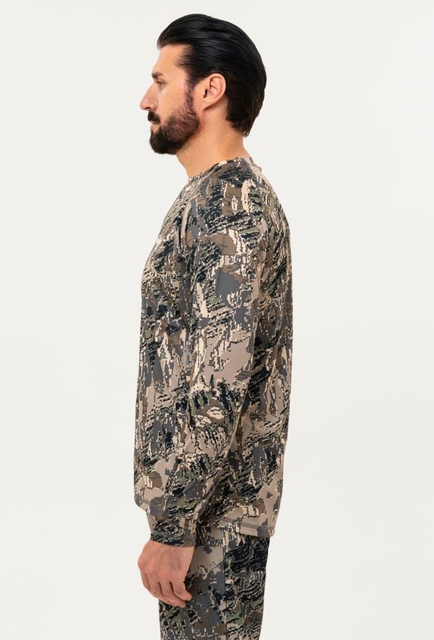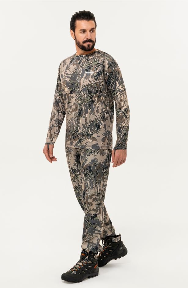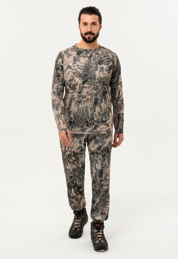 Лонгслив выполнен в цвете Figure, который помогает оставаться незаметным в природных условиях.