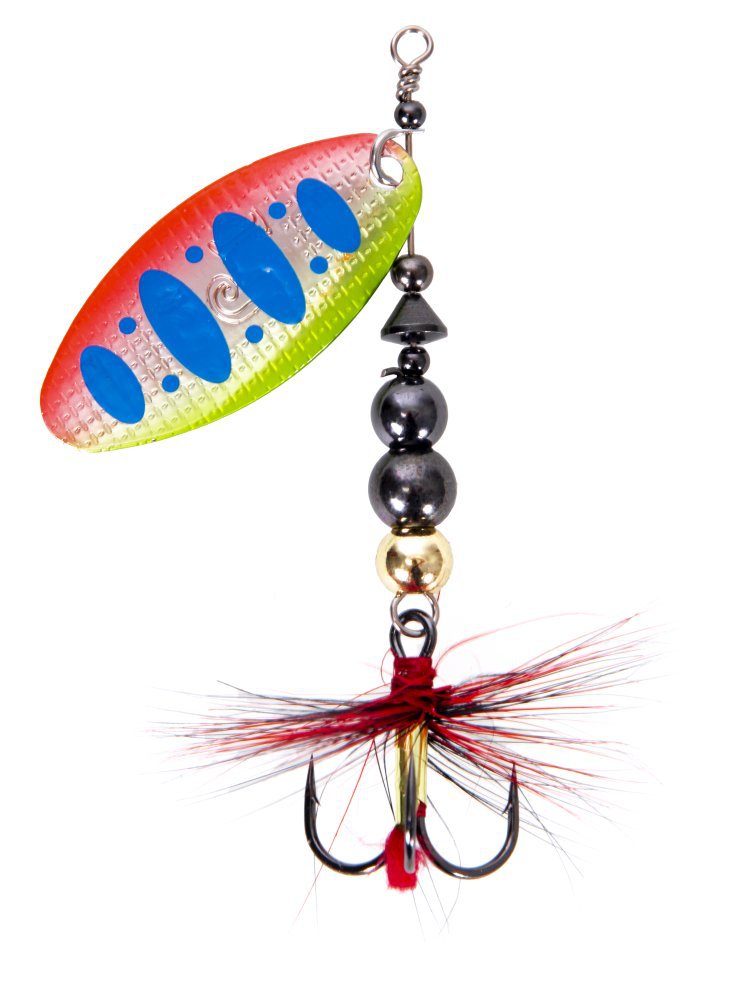 Главный элемент блесен-вращающейся лепесток. Он очень легок, сделан из латуни и обладает хорошими динамическими показателями при вращении в воде, что позволяет делать проводку приманки на минимальной скорости, что очень привлекательно для любой хищной рыбы. Лепесток включается в работу сразу, как только блесна начинает движение. Лепестки окрашены с двух сторон. Под каким бы углом хищная рыба не смотрела на приманку, ее расцветка остается одинаково привлекательной, что повышает интерес к блесне и, в итоге, приводит к результативной атаке.