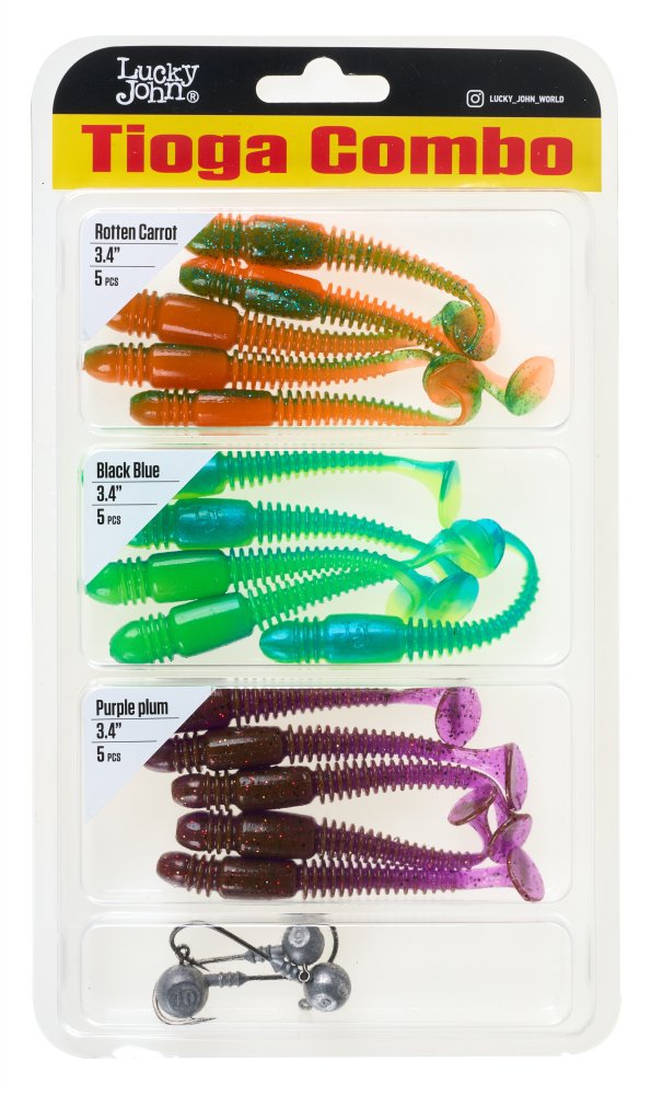 Набор виброхвостов Lucky John Pro Series Tioga MIX 3 (8.64 см / 15 шт)