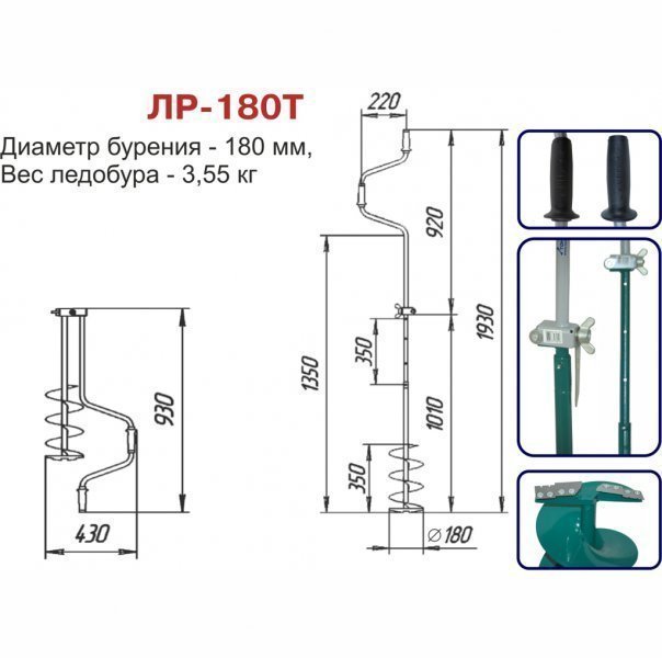- Все размеры: длина 1930 мм, диаметр бурения 180 мм.